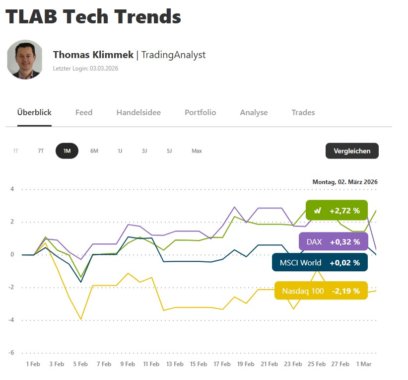 Wie im Januar konnte das Wikifolio auch im Februar mit einer monatlichen Performance von 2,72 % die Standard-Indizes schlagen.